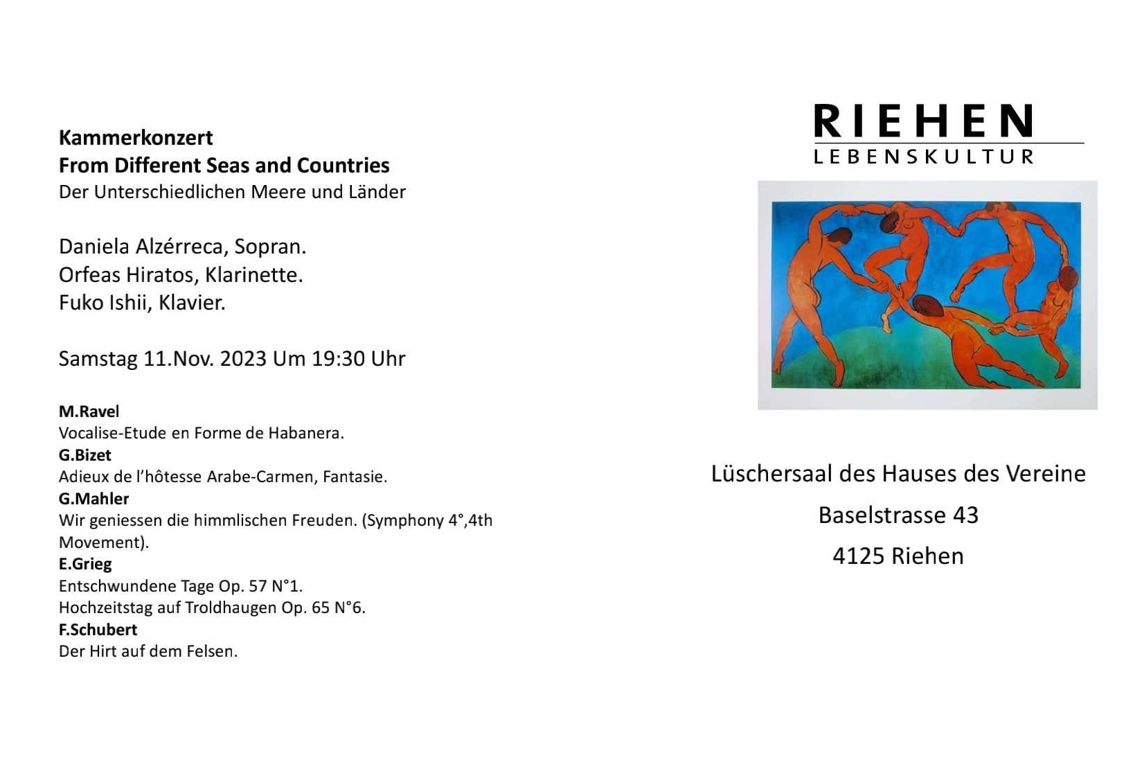 Haus der Vereine, Lüschersaal, Baselstrasse 43, 4125 Riehen